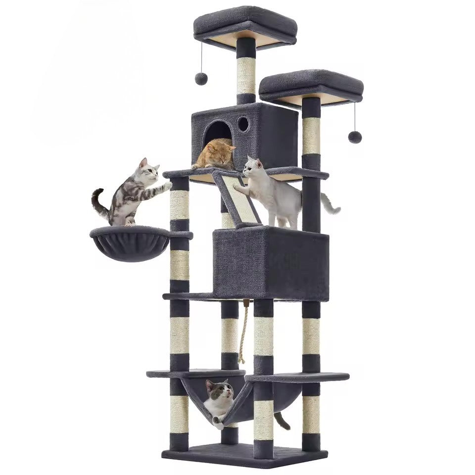 Les deux plateformes rembourrées, les niches, le panier et le hamac permettent à chacun d'avoir son territoire personnel, réduisant considérablement les conflits. Vos chats pourront se reposer, jouer et observer sans empiéter sur l'espace des autres.
